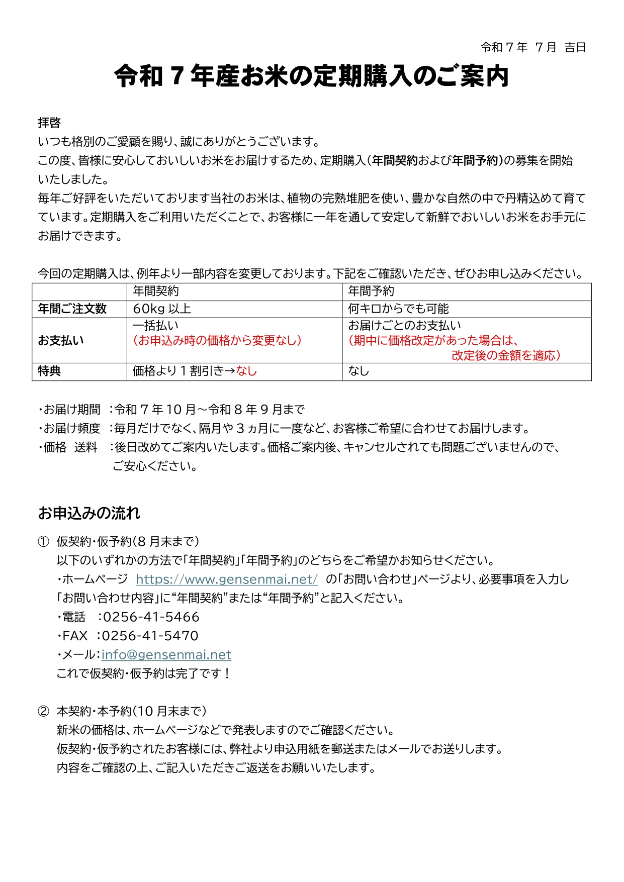 定期購入(年間契約・年間予約)の受付を開始いたします。